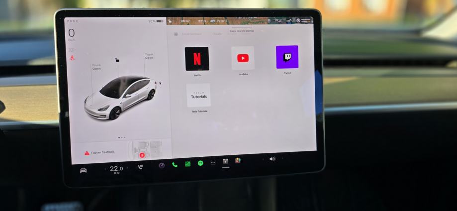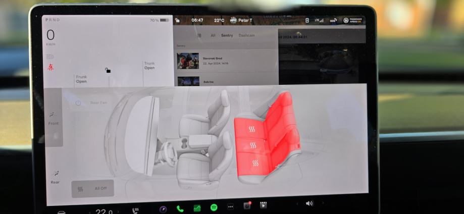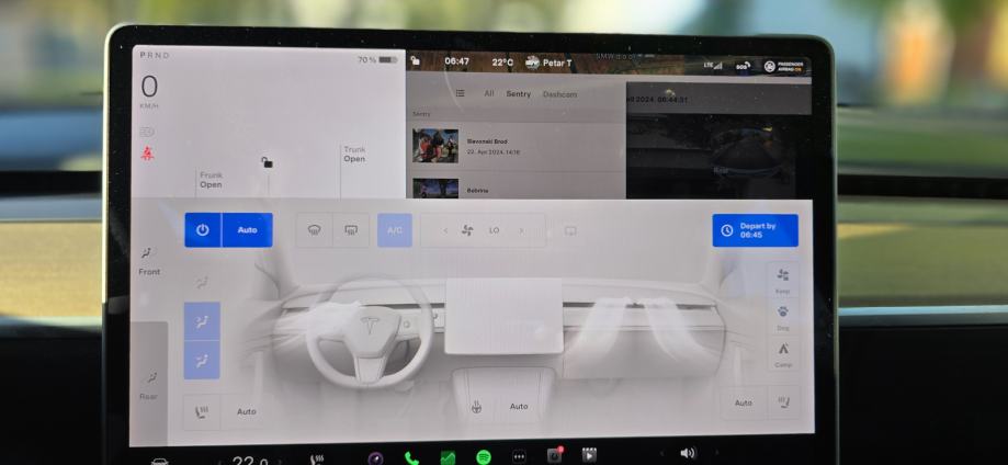 - auto je non stop spojen na internet, ima premium connectivity što znači da imate Spotify, tunein, tidal za glazbu dok se vozite (date glasovnu naredbu s pjesmom koju hoćete da svira), a dok stojite YouTube, Netflix.