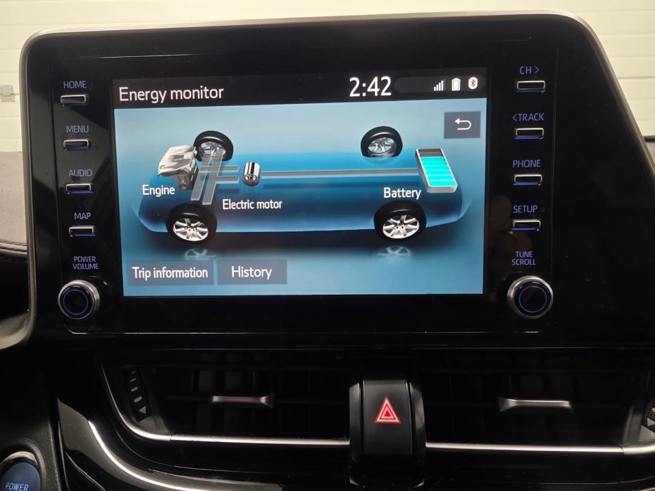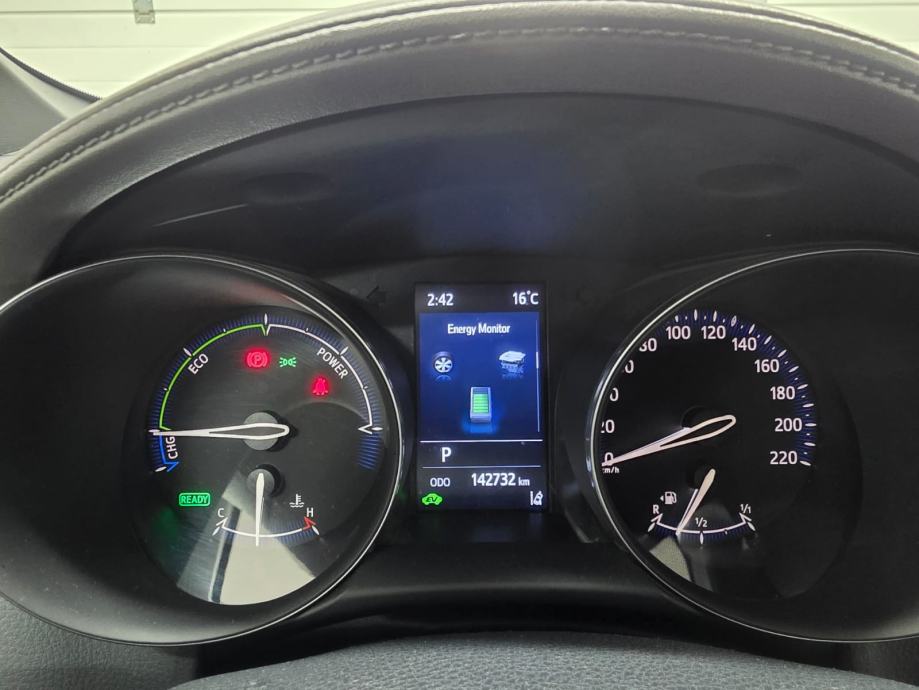 MyT usluge povezivanja, DAB digitalni prijamnik, 9" Multimedijski zaslon osjetljiv na dodir, multimedijski sustav Toyota Smart Connect, bežična integracija pametnog telefona, dvozonska automatska klima kontrola, start tipkom, napajanje utičnica 12 V - prednji Filter peludi, Električna brava na vratima Indikator mjenjača (GSI), Multiinformacijski TFT zaslon 4.2" Multiinformacijski zaslon, Unutarnji retrovizor elektrokromatsko osvjetljenje prtljažnika, Servo upravljač (EPS)Upravljač s uzdužnim podešavanjem, Upravljač s podešavanjem visine - ručno osvjetljenje u štitniku od sunca na strani vozača, osvjetljenje u štitniku od sunca na strani suvozača Ogledalo u štitniku od sunca na strani vozača, Ogledalo u štitniku od sunca na suvozačevoj strani bočno upravljanje audio sustavom na upravljaču, prilagodljivi tempomat - komande na upravljaču, električni podizači prozora sa zaštitom od priklještenja, električni podizači prednjih prozora, električni podizači prozora jednim dodirom, tipke za upravljanje informacijskim zaslonom na upravljaču, sustav za napuštanje trake (LDA) tipka na upravljaču, tipka za prepoznavanje glasa na upravljaču, električni stražnji prozori, sustav za odleđivanje stražnjeg stakla, tipka za ograničenje brzine na upravljaču, Osvjetljenje suvozača (žarulja) statične vodeće linije na zaslonu stražnje parkirne kamere Prikaz stražnje parkirne kamere na zaslonu Dječja brava, središnji naslon za ruke Indikator hibridnog sustava, indikator ekološke vožnje Automatski prekidač za duga svjetla,Digitalnibrzinomjer Sportska prednja sjedala, Zaključavanje prozora na suvozačevoj strani Akustika vjetrobransko staklo, 2. red sklopivih stražnjih sjedala (60:40) Digitalni tahometar, grijana prednja sjedala Vozačevo sjedalo podesivo po visini, suvozačevo sjedalo podesivo po visini Svjetloplavo osvjetljenje u prostoru za noge, tipka za ograničenje brzine na upravljaču, brisač vjetrobranskog stakla stražnji prozor s ciklerom ,Nanoe-X® tehnologija za čišćenje i ovlaživanje zraka u kabini, stražnja kamera za parkiranje, sigurnosni sustav u slučaju sudara s detekcijom pješaka i biciklista, prepoznavanje prometnih znakova (RSA), automatska duga svjetla (AHB), prilagodljiva brzina.