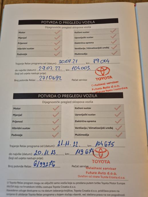 Auto je star 11. g. i svih 11.g. servisiran je u Toyota ovlaštenom servisu Toyota Futura Varaždin.