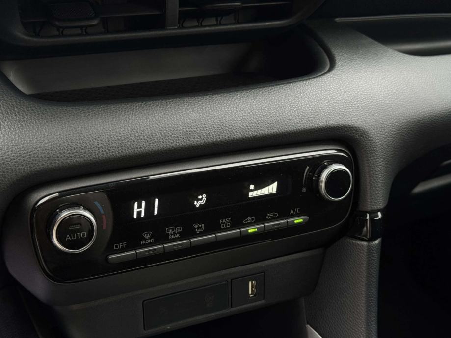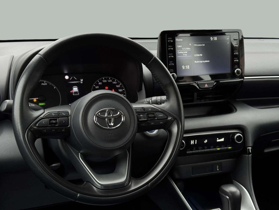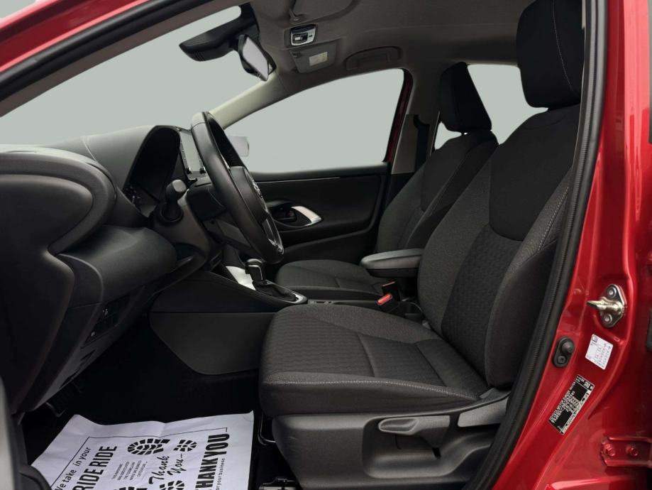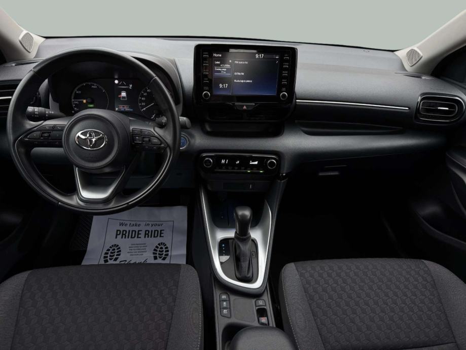 Toyota Yaris 1.5 Hybrid kombinira benzinski i električni motor, pružajući tihu, štedljivu i uglađenu vožnju uz niske troškove održavanja. Vozilo je bogato opremljeno automatski klima uređaj, tempomat, kožni multifunkcijski volan, el. retrovizori i podizači stakala osiguravaju visoku razinu udobnosti. Unutrašnjost je praktična i funkcionalna, s udobnim sjedalima, djeljivom stražnjom klupom i Isofix sustavom. Sigurnost je zajamčena brojnim sustavima pomoći u vožnji, LED svjetlima, kamerom za vožnju unatrag i parkirnim senzorima. Moderan multimedijski sustav sa zaslonom na dodir, Bluetoothom i digitalnim radiom (DAB) upotpunjuje kvalitetan doživljaj vožnje.