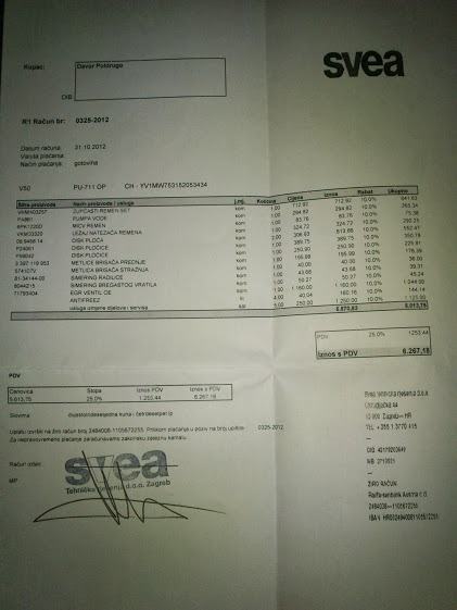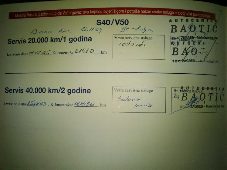Na 187 tkm napravljen veliki servis u Nilssonu (ovlašteni Volvo servis): pogonski remen i pumpa za vodu, mikro remen, natezači, novi EGR ventil, simerinzi bregastog vratila i radilice, nove prednje disk ploče, prednje pakne.