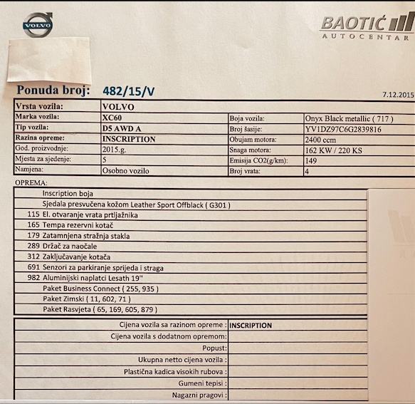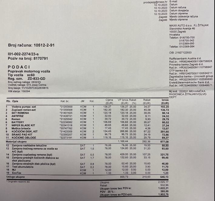 Veliki servis: 10.10.2023 (156594km) - Redovno servisiran u Volvo servisu