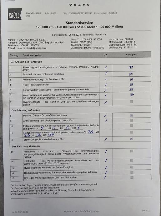 • 28.04.2025 (121.902 km) = UPRAVO NAPRAVLJEN NOVI SERVIS U VOLVU + RADNI NALOG SERVISA !