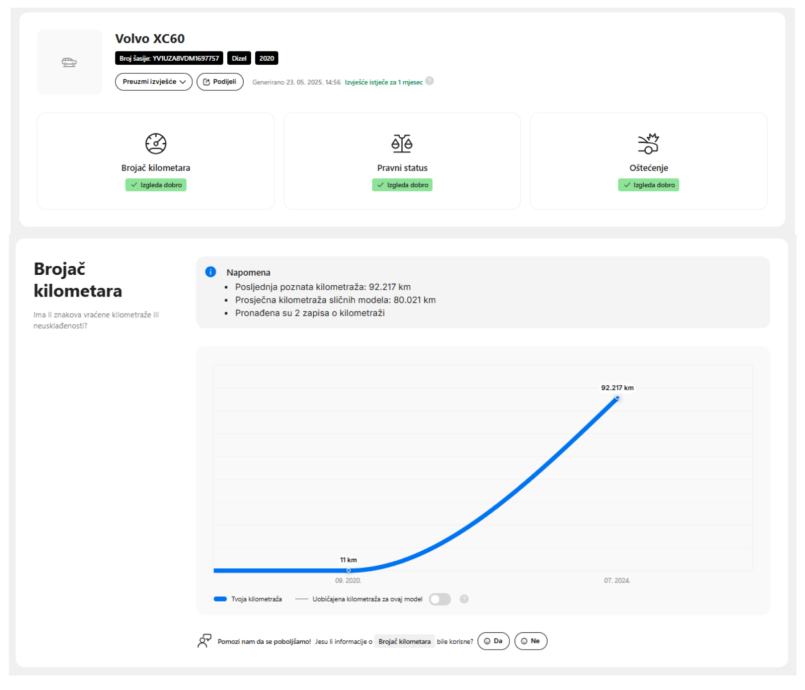 - Jamstvo na tehničku ispravnost vozila, prijeđene kilometre te podrijetlo vozila.