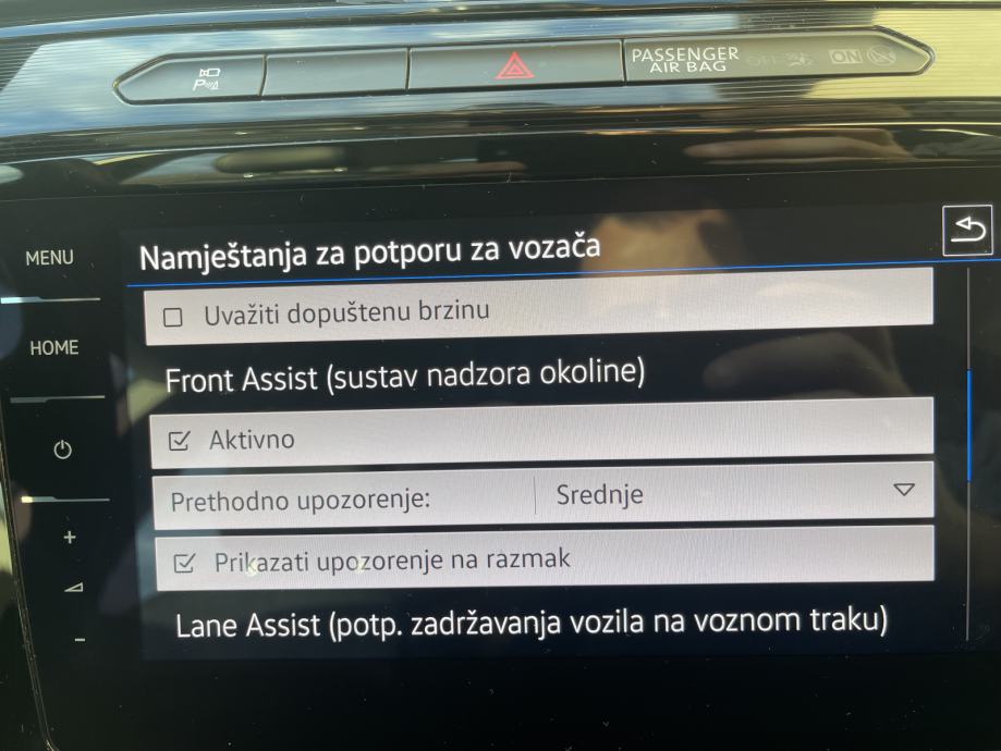 - Adaptivni tempomat, radar u znaku, lane assist itd.
