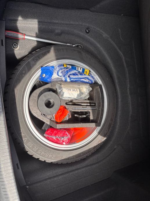 U gepeku je nova original felga sa gumom koju sam kupio i dodao sam u gepek jer gelu ne vjerujem.