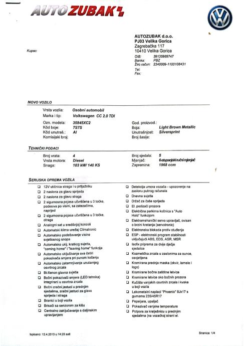 - svi servisi obavljeni u ovlaštenom servisu (AUTOZUBAK)
