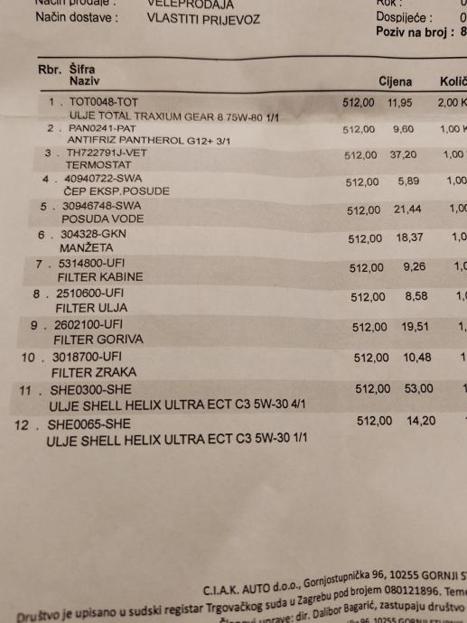 Napravljen je veliki servis sa vodenom pumpom i sve kaj je mehaničar primijetio i bilo mu sumnjivo zamijenjeno je.