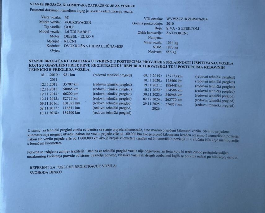 Ispis km sa tehničkog pregleda vozila