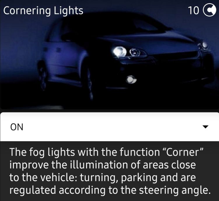 Na auto su otključane neke dodatne funkcije koje su bile tvornički zaključane: video u vožnji, maglenke kod skretanja, automatsko zatvaranje stakala kod kiše (Rain Closing) LED osvjetljenje za noge (plavo) , punjenje kazaljki (needle sweep) , TSC (torque Steer compensation)