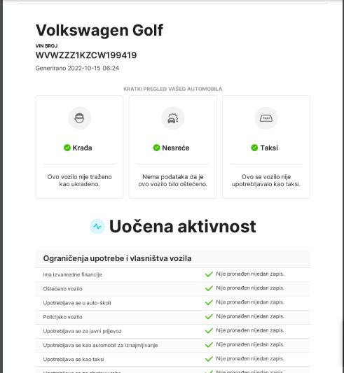 ISPIS IZ CAR VERTIKALA DA AUTOMOBIL NIJE IMAO NIKAKVE ŠTETE ILI SLIČNO TOME.