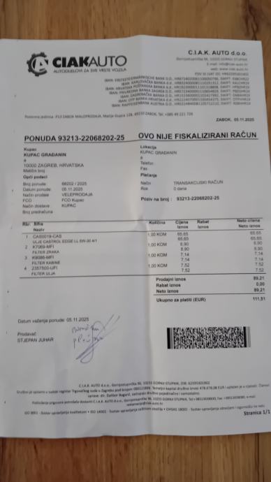 MALI SERVIS NAPRAVLJEN 05.11.2025.(RAČUN U PRILOGU)