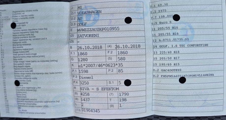 VW Golf 7 1,6 TDI FACELIFT COMFORT LINE mod.2019 HR VOZILO U PDV-u SER