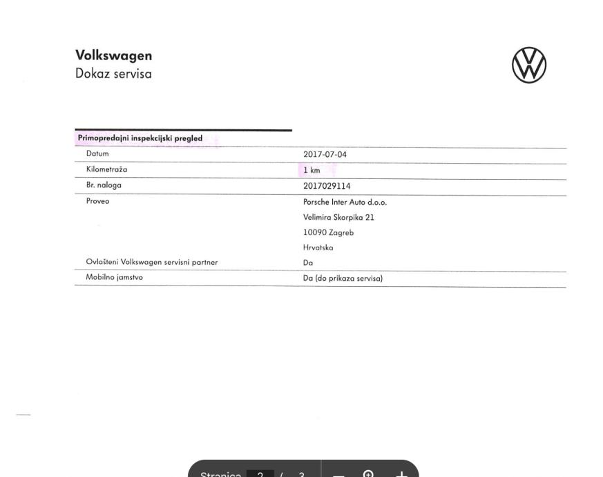 Korišten kao službeno vozilo na ime firme u kojoj sam zaposlenik a nakon isteka leasing-a sam ga otkupio u privatni posjed tako da je sve vrijeme kod mene, u fotografijama primopredajni zapisnik od 1km 2017.