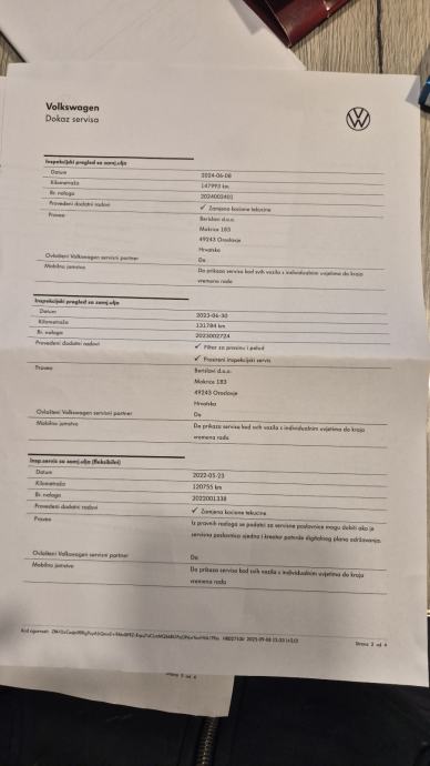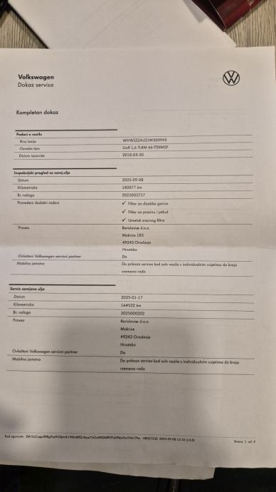 Posjedujem ispis kompletne servisne povijesti
