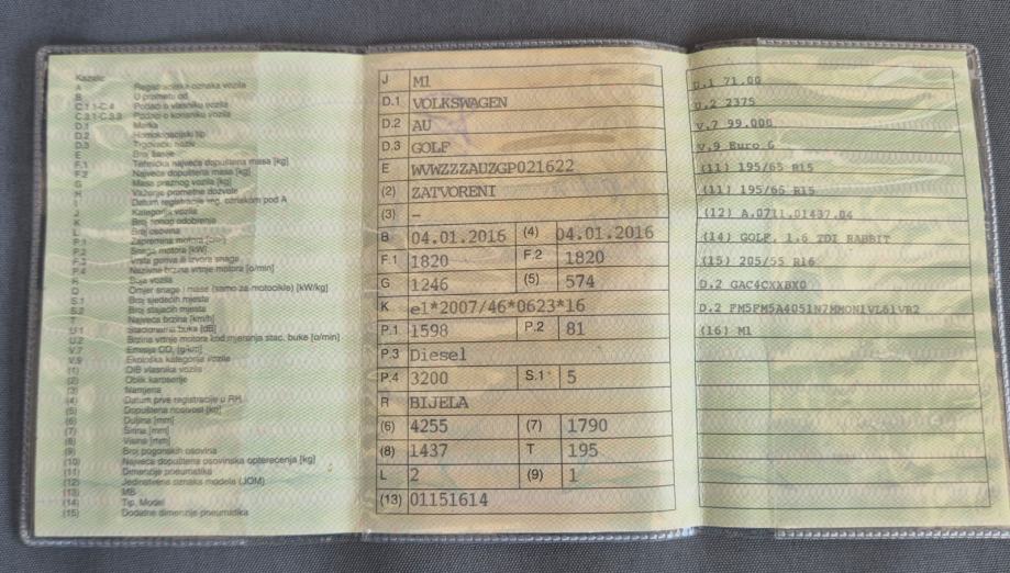 VW GOLF 7 1.6 TDI RABBIT 81KW 2016 GODINA, SERVISNA, U SUSTAVU PDV-A