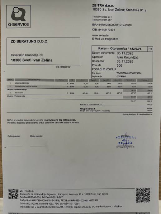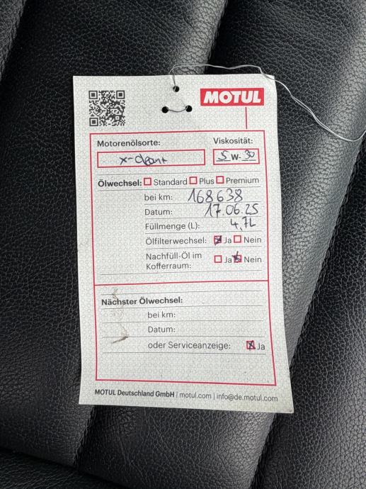 Zadnji servis (mali - ulje i filteri) napravljen 17.06.2025. na 168.638 km!