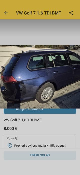 Prodajem rabljeno vozilo: VW Golf 7 Variant