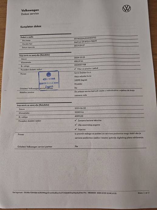 Uz auto dolazi servisna knjiga i dva ključa. Može se provjeriti u servisu po želji kupca.