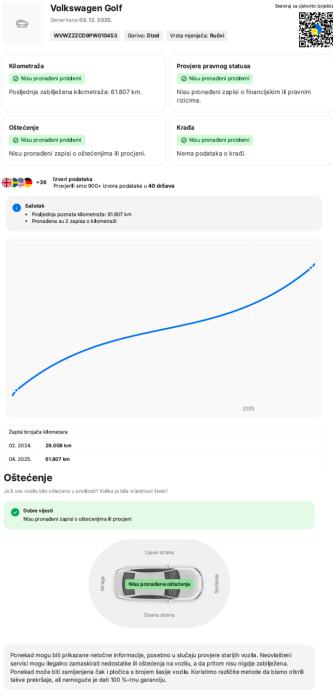- Jamstvo na tehničku ispravnost vozila, prijeđene kilometre te podrijetlo vozila.