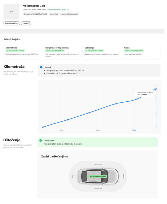- Jamstvo na tehničku ispravnost vozila, prijeđene kilometre te podrijetlo vozila.
