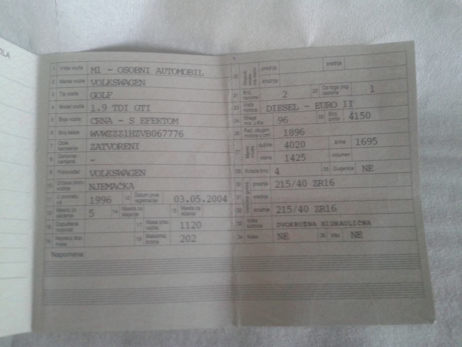 prva boja i nekaramboliran.Uvezen iz Njemacke 2004 godine i u vlasnistvu 10 godina.