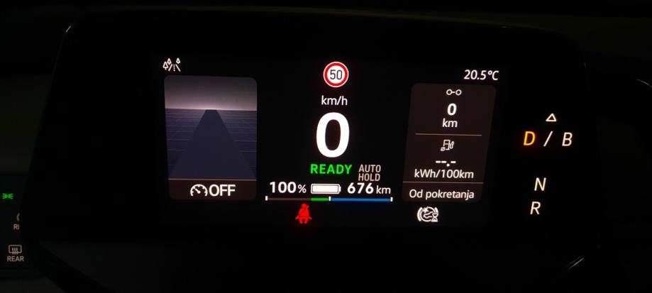 Ima doseg gradska vožnja 650 km ljeti zimi 500 km,otvorena cesta 130 na sat 450 km,165 km na sat 350 km, auto je odličan ima 8 god garancije na bateriju. Aktivna vožnja, praćenje traka, Dvozonsku klimu, Toplinsku pumpa, ...