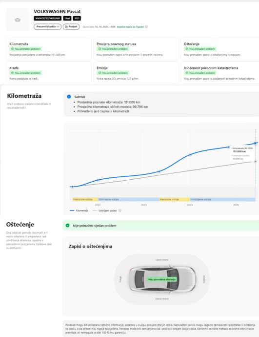 - Jamstvo na tehničku ispravnost vozila, prijeđene kilometre te podrijetlo vozila.