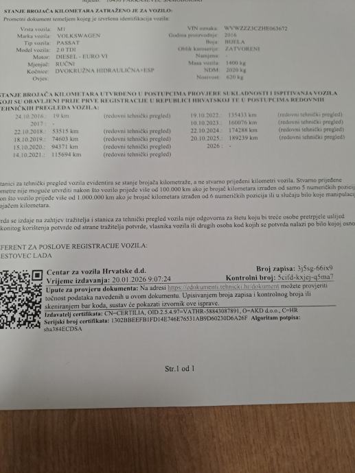 VW Passat 2,0 TDI Hr auto,ispis km,vel.servis,reg:11.26g
