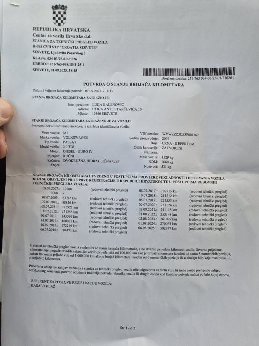 Uz auto ide ispis kilometara!