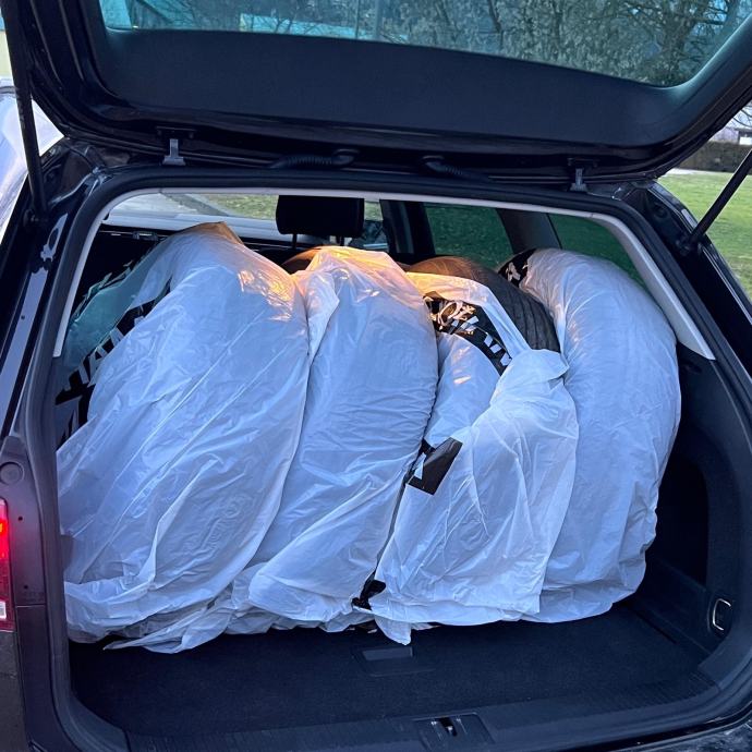 Zimske gume na autu Dunlop wintersport 5 i ljetne u gepeku.