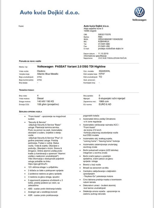 VW Passat Variant 2,0 TDI BMT DSG automatik