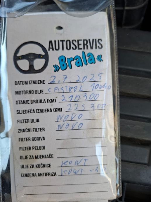 - Zadnji evidentirani redovni servis napravljen 02/07/2025.g na 210300 Km ulje Castrol Profesional + filteri )