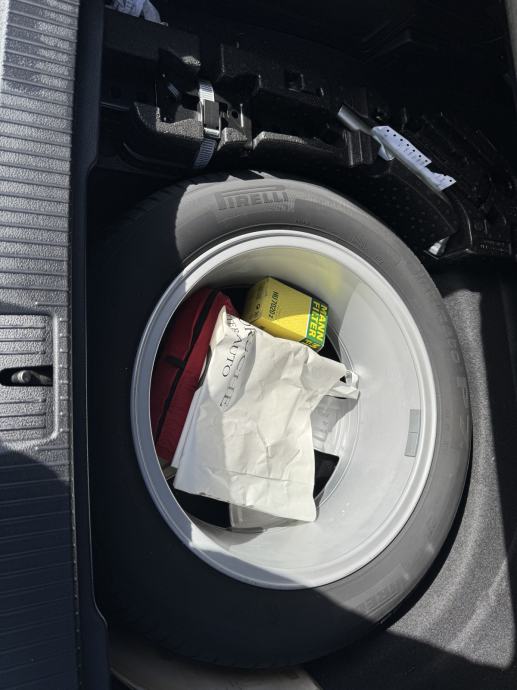 Rezerna guma u pravoj velicini, felga ista kao ove na autu, dizalica i sve je u autu, nista ne fali.