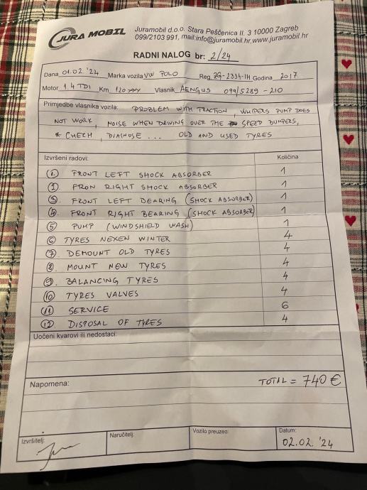 U 02/2024. na cca 120.000 km napravljen veći servis: