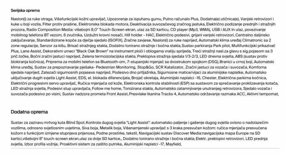 Auto je kupljen u Autozubak-u (Neostar vozilo). Prvi vlasnik je bio fizička osoba koja je auto uzela na leasing na 3 god. Kupljen je u 06 mj 2023 sa cca 38.000km. U slikama se može vidjeti popis sve opreme iz ponude za vozilo.