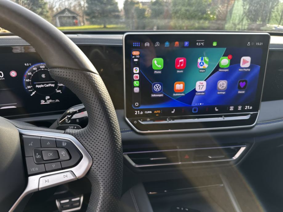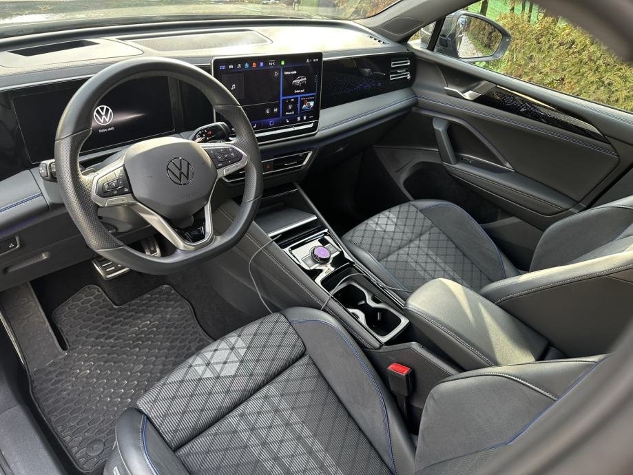 Tiguan ima sve od opreme - Rline interijer u crnoj boji, sportska sjedala, panorama krov, LED svijetla, adaptivni tempomat sa svim kočenjima, usporavanjima itd., očitavanje znakova, Head-Up display, grijanje sjedala, grijanje volana, praćenje trake, potpora za prikolicu, sve moguće pomoći na brijegu, pri parkiranju, kopčanju prokolice itd...