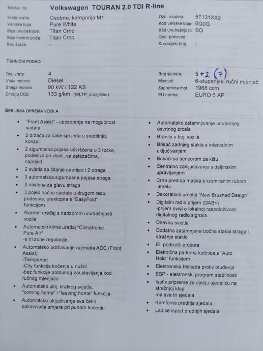 VW Touran 2.0 TDI R LINE 7 SICEVA VIRTUALNI SAT PRVI VLASNIK NIJE UVOZ