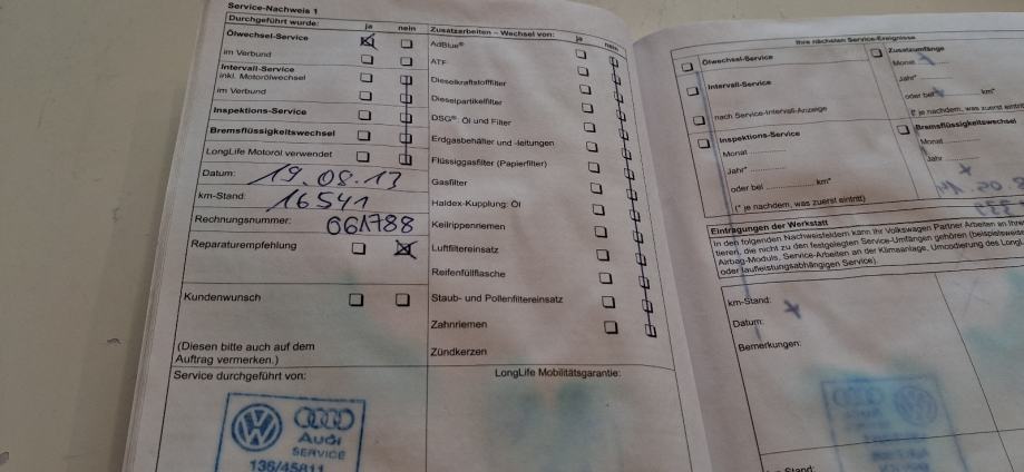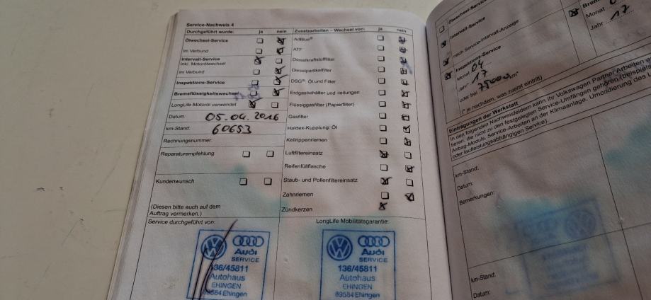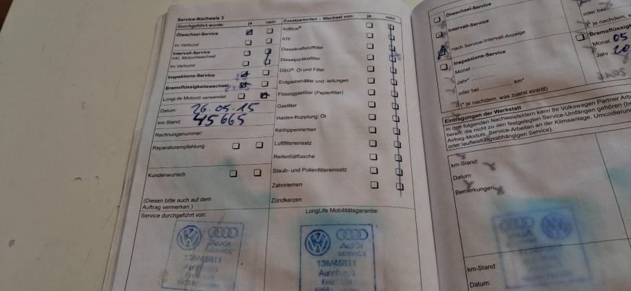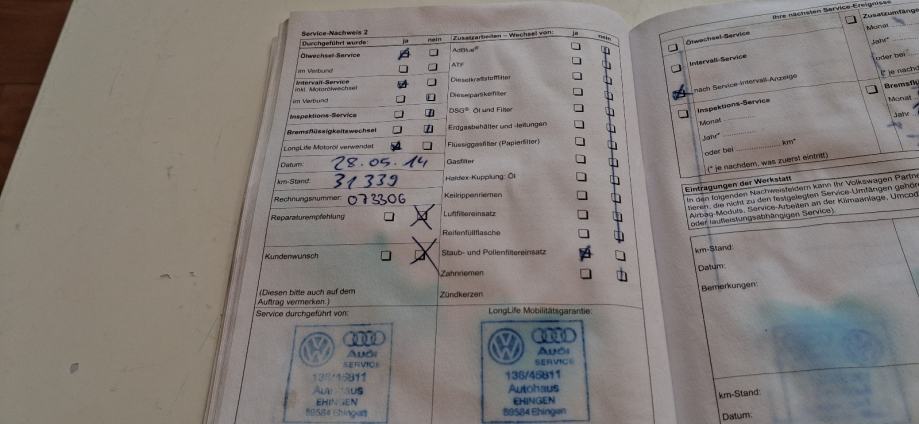 U Njemačkoj servisiran u ovlaštenom do 100 000km do 2020.god kad je uvežen - upisano u knjižici, od tada u privatnom servisu, računi u prilogu.