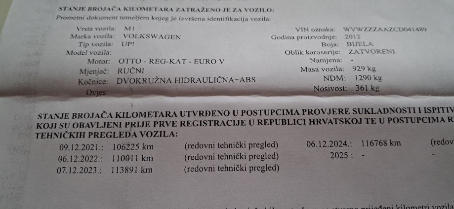 VW UP 1.0, 117 000km, Reg 1 god, servisna, POTVRDA SA TEH