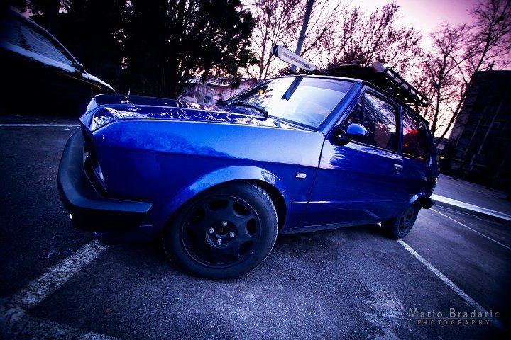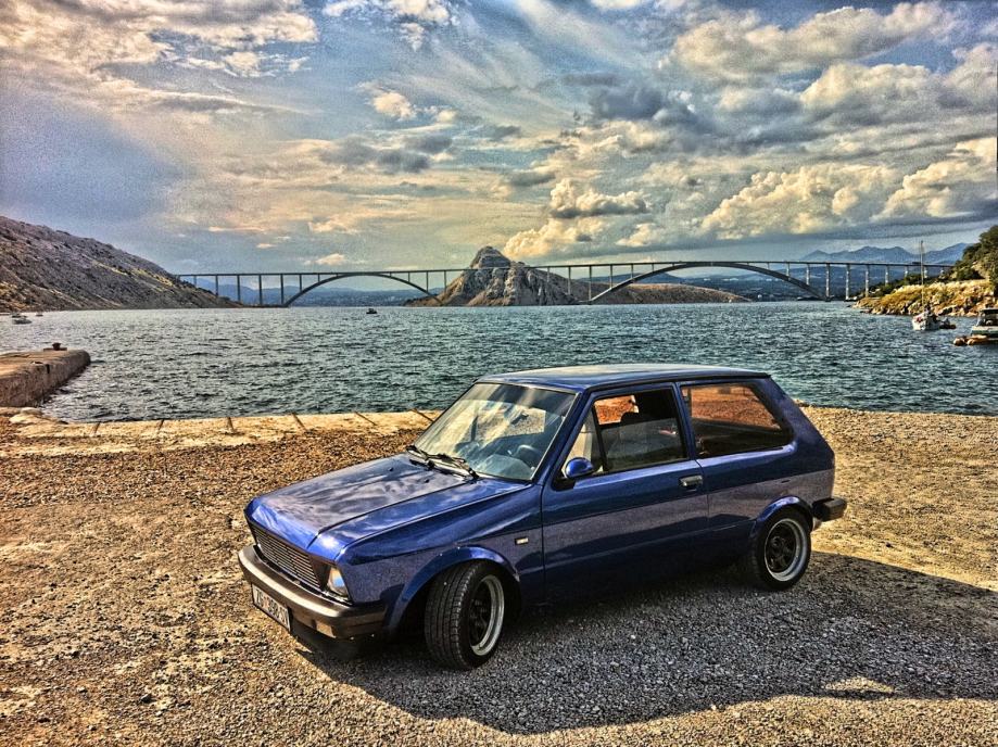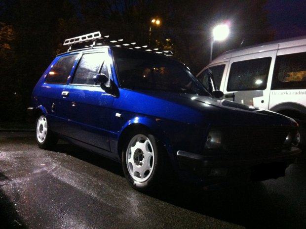 Getriba je od fiat una, jako sam zadovoljan u odnusu na originlanu od yuga 55, ovjes je kraceni i tvrdo punjen, pletene lajtunge, alu felge 13" s zimskim gumama vozenim jednu zimu.