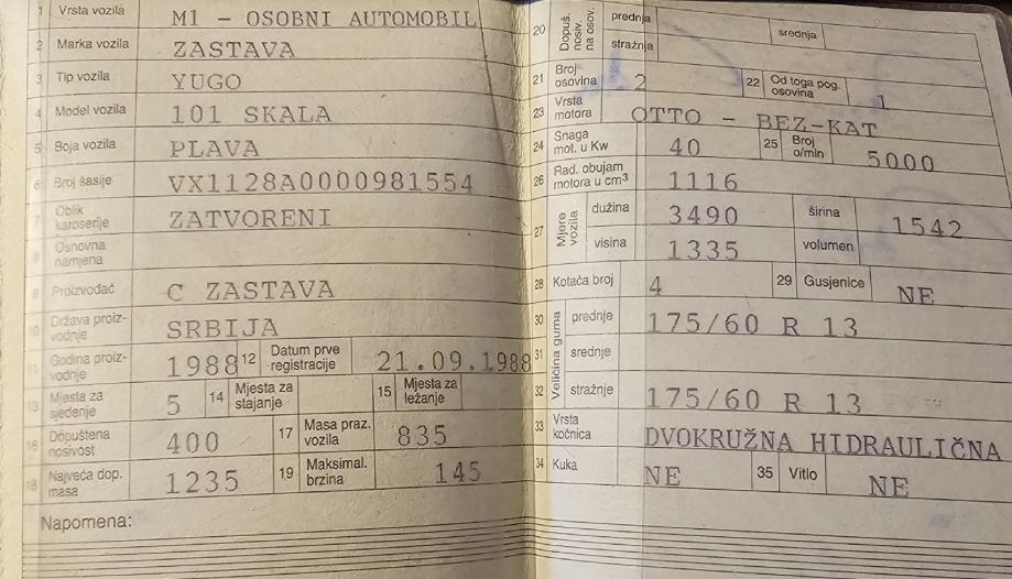 Radio do onog trenutka kad je auto dovezen u garažu prije 15 godina i do sad ga nije nitko palio. Idealno za projekt. Limarija u odličnom stanju.