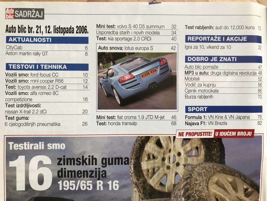 Auto blic.hr 2006 test Mini Cooper Lotus Europa S Alfa 8C Ho. Transalp