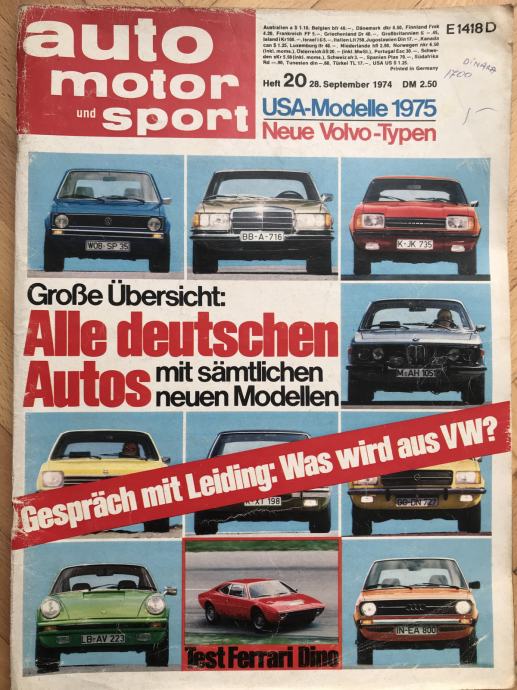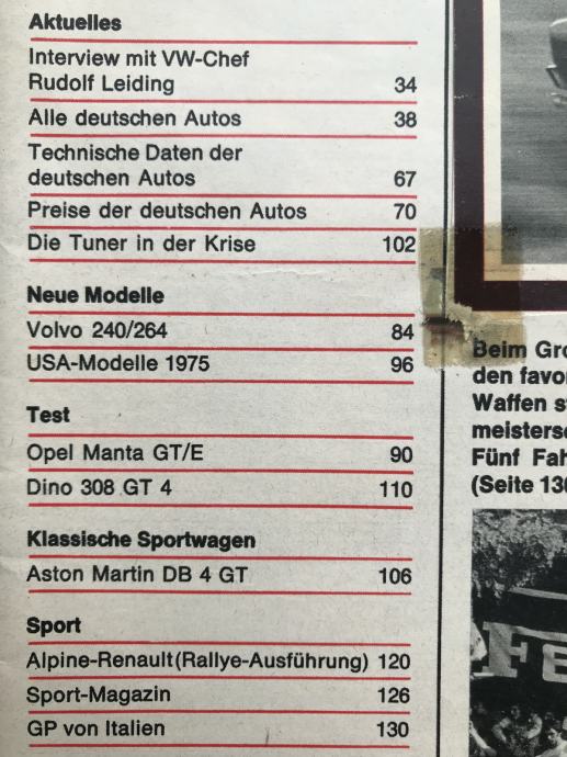 Auto Motor und Sport 1974. test: Dino Ferrari 308 +Rally Alpine +Manta