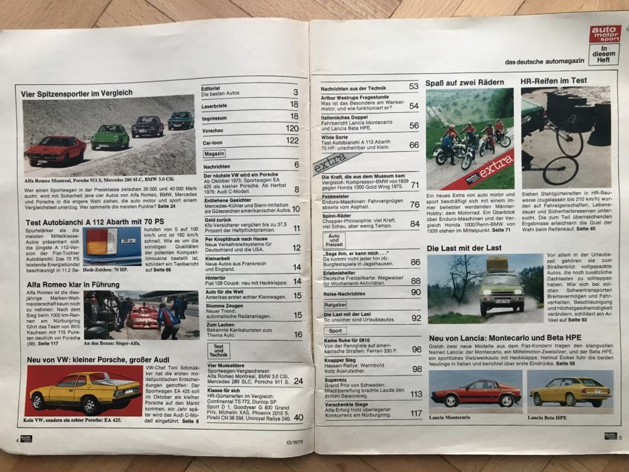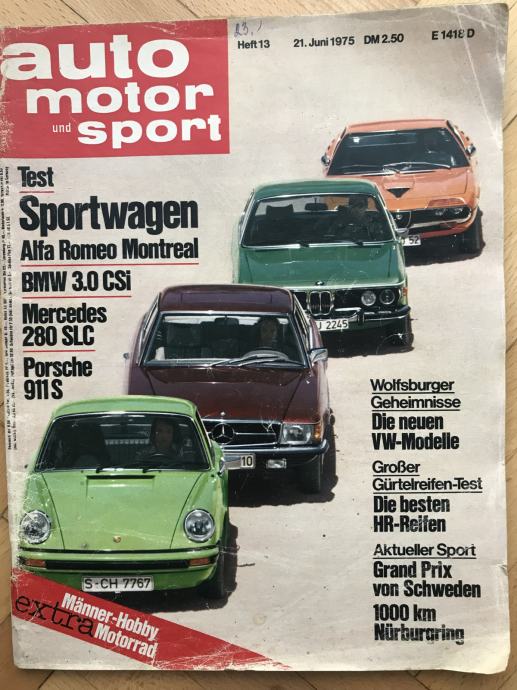 Auto motor und sport 1975 test: 911S vs 3.0 CSi vs 280 SLC vs Montreal