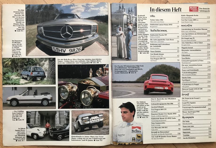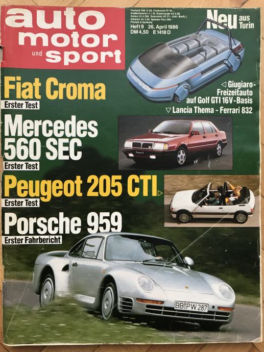 Auto Motor und Sport 1986.test Porsche 959 +GSX-R 1100 +560SEC +205CTI