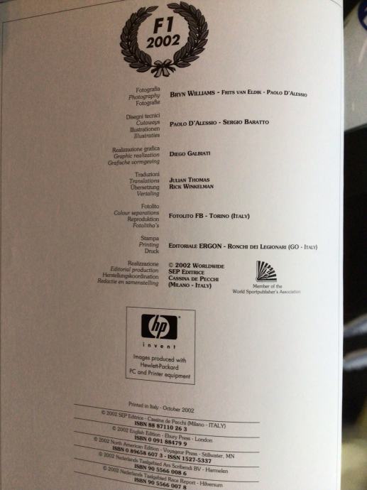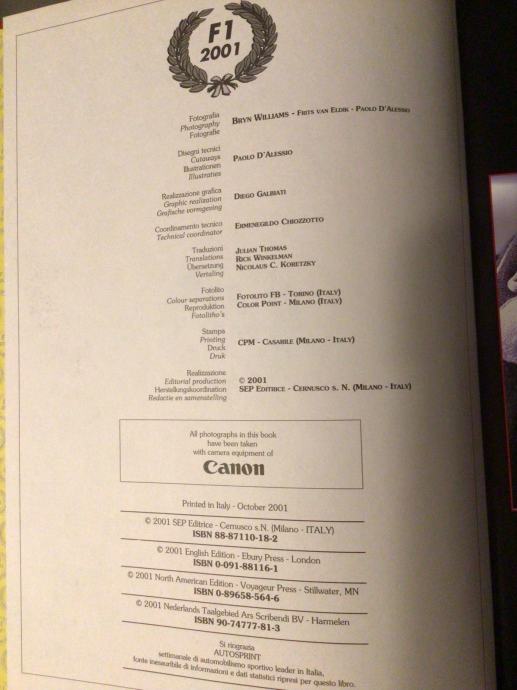 F1 monografija dve knjige sezona 2001 i2002 Auto sprint, 2001 i 2002, tvrdi uvez 34x24;210 strana vrhunske fotografije pojedinacna cijena 48 obje 75