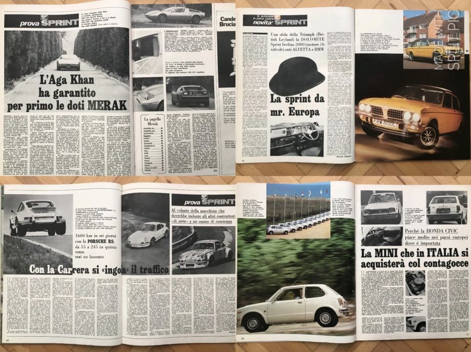 Auto Sprint `73.test Porsche 911 C.RS + Maserati Merak +Civic +posteri