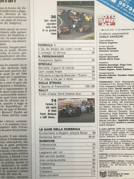 +fotoreportaža s Velike nagrade Italije u F1 koju je pobjedio Alan Prost, ispred Piqueta i Senne, na 16 str