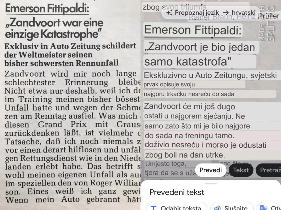 Emerson Fittipaldi piše o utrci F1 u Zandvoortu-Nizozemska, na 1 str + 2,5 str o reportaži s te utrke